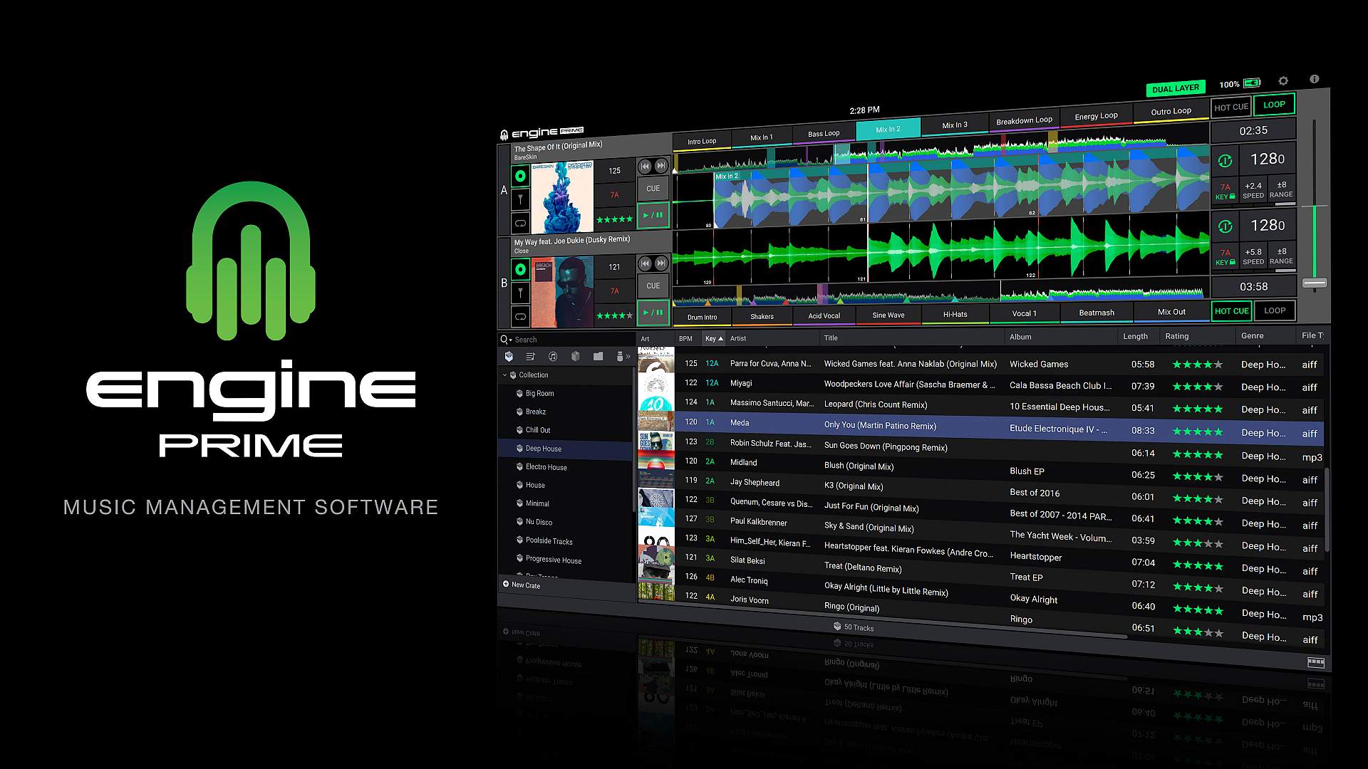Engine Prime to oprogramowanie do analizy i zarządzania muzyką, które pozwala na optymalizację biblioteki muzycznej, nawigację i odtwarzanie plików na odtwarzaczach multimedialnych SC5000 Prime od Denon DJ. Przez wspomaganie zarówno systemów operacyjnych Mac, jak i Windows, Engine Prime zapewnia pełną integrację z kolekcjami iTunes i Serato DJ, a także zaawansowane dostosowywanie ścieżek i dostosowanie wydajności. Pełne wsparcie dla wszystkich popularnych, kompresowanych i bezstratnych formatów plików muzycznych, w tym FLAC.