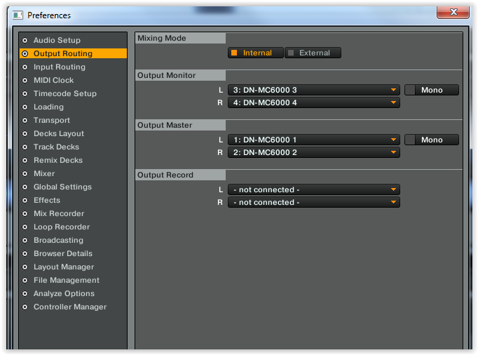 - Click on the button next to your hardware device option (in this example, I am using the DN-MC6000) to enable the Denon hardware as an audio interface.