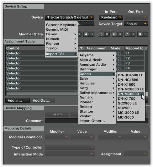 And that's it! The rest of the setup is identical to setting it up in the earlier versions of Traktor Pro. Simply follow the steps suggested above, but choose the appropriate Denon DJ driver for your device.