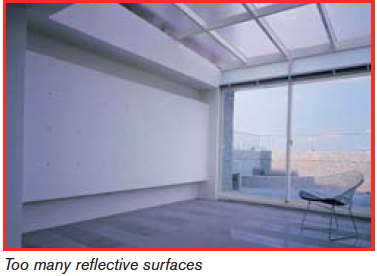 What you want to do is create a room that is neither too “live” nor too “dead.” A “live” room is a room with a preponderance of hard, reflective surfaces. Lot of exposed glass windows, hardwood floor, things like that. The room sounds like your high school gymnasium—things seem to echo forever. (See figure 1.) Those excessive echoes make it hard to distinguish between individual instruments and vocalists in the music. Everything smears together in a harsh cacophony of overly-bright, hard-edged sound. The original warm, organic sound is lost and you’re left with a shrill, indistinct, tinny caricature of what the music should sound like.